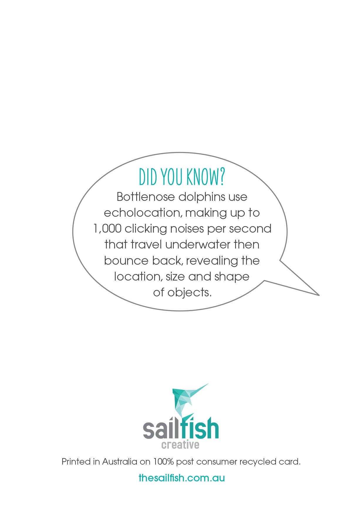 Australian made greeting cards by Sailfish Creative. Each card has a fun fact on the back of the card....