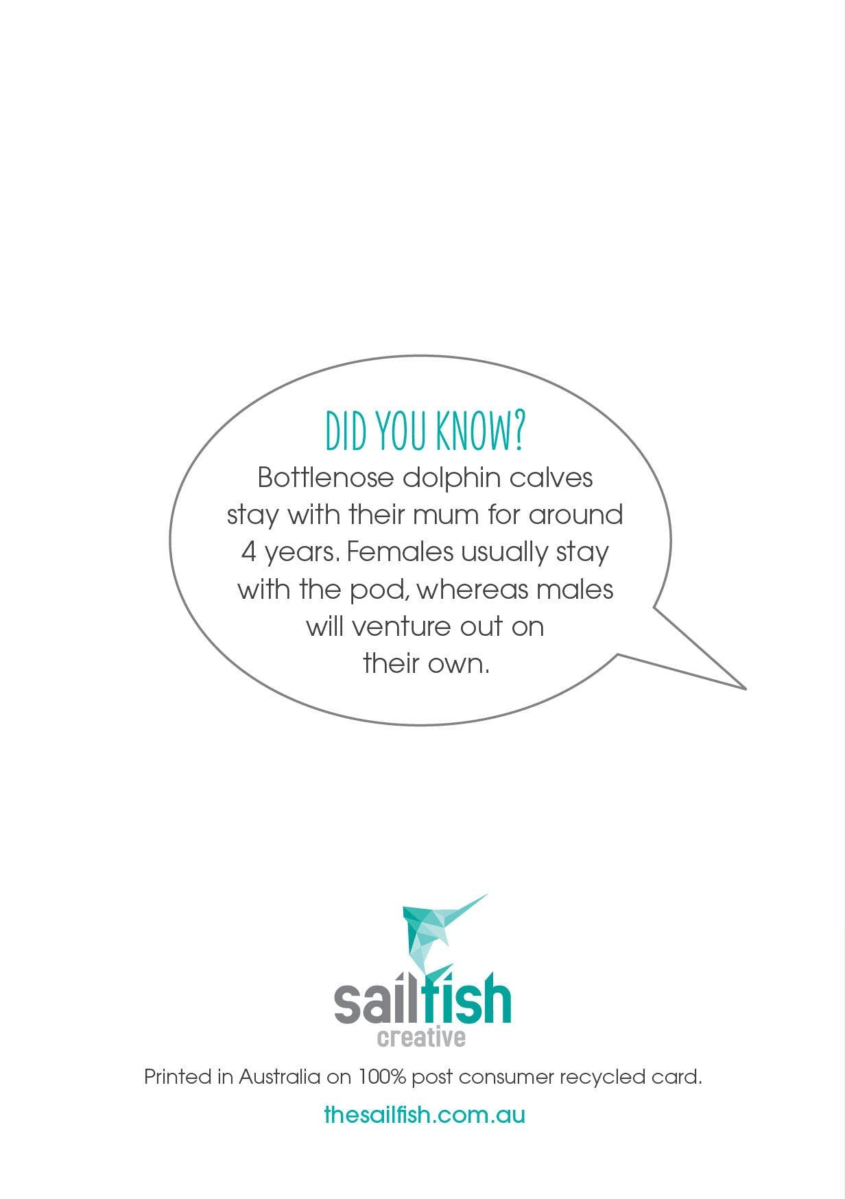 Australian made greeting cards by Sailfish Creative. Each card has a fun fact on the back of the card....