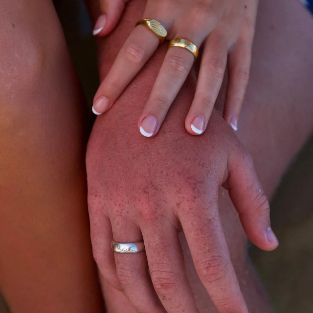 There is nothing worse than that feeling that you are never going to get your ring off. Keep in mind if you got the ring on, you will get it off. We recommend running the ring under some water or using a gentle hand soap to help it come off. Rather than stress twisting, yanking and tugging, gently rock the ring back and forth over each knuckle. Stay calm, when you stress your finger will swell so it will make it harder to remove.Sea Coins embodies the essence of nature's beauty through our perfectly imperfect handmade sustainable and ethical jewelry. Each creation, much like a delicate sea coin, carries a unique story and pattern, reminding us of the beauty in life's imperfections.